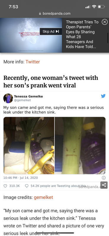 re: My son came and got me, saying there was a serious leak under the kitchen sink