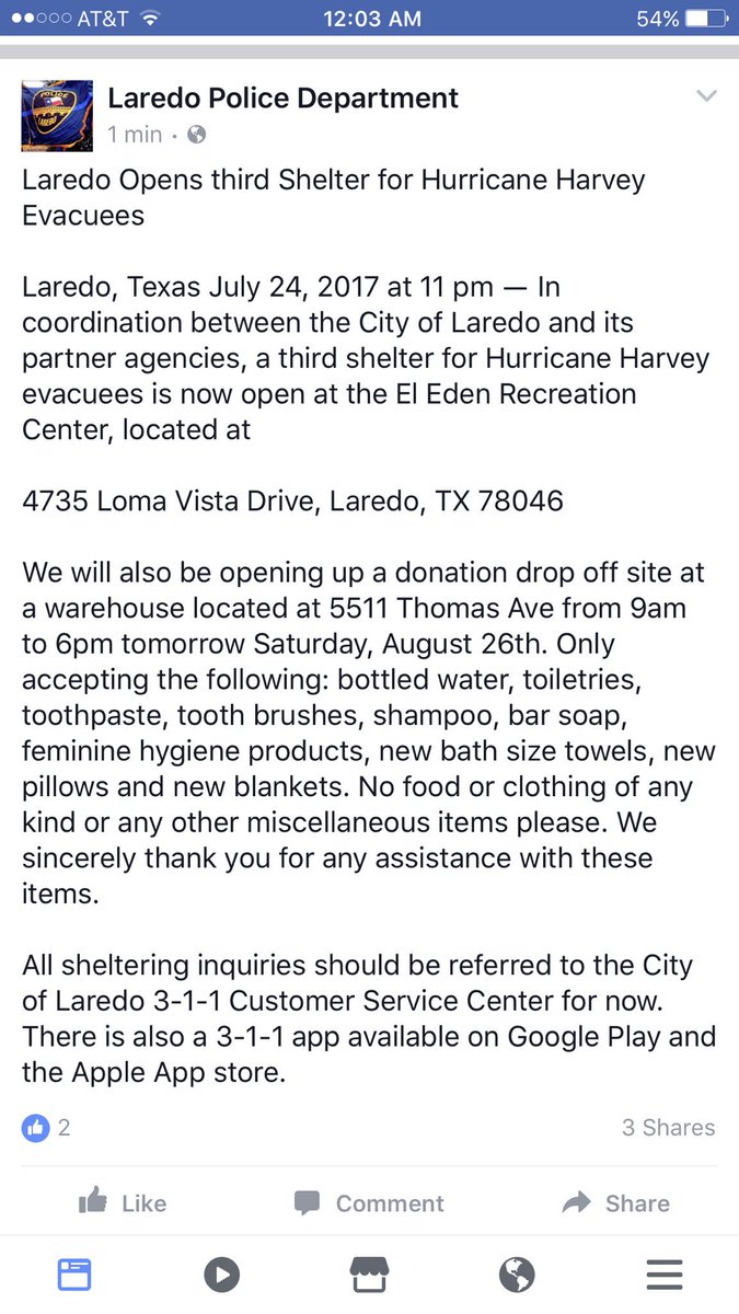 Laredo has a new shelter open if needed.