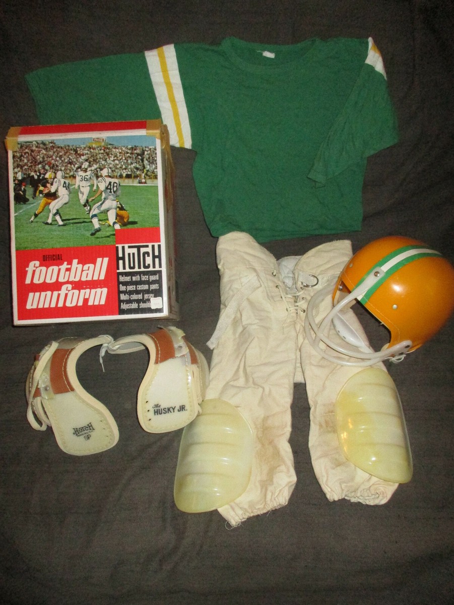 I too got a generic football uniform consisting of shoulder pads, pants, jersey and helmet and wore that stuff out playing pick-up tackle football in vacant lots as a young kid.