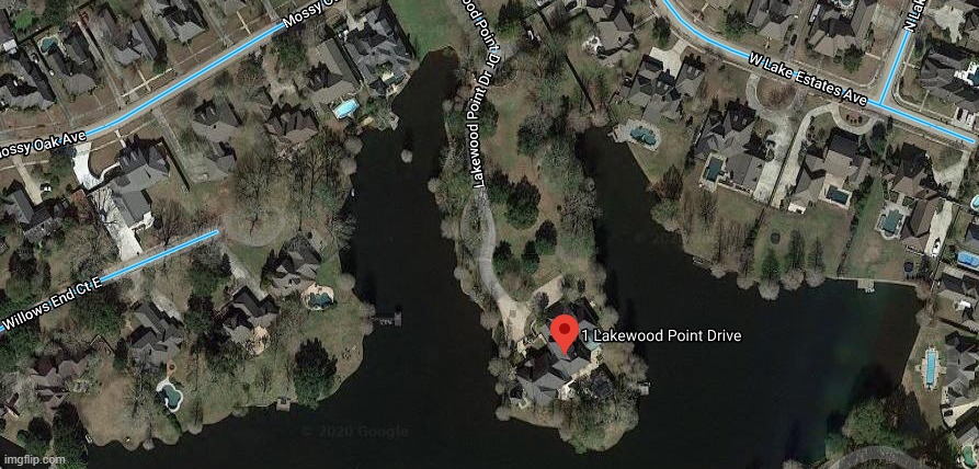 Go to street view on Google Maps. His driveway leading to his gate runs right through somebody’s backyard!