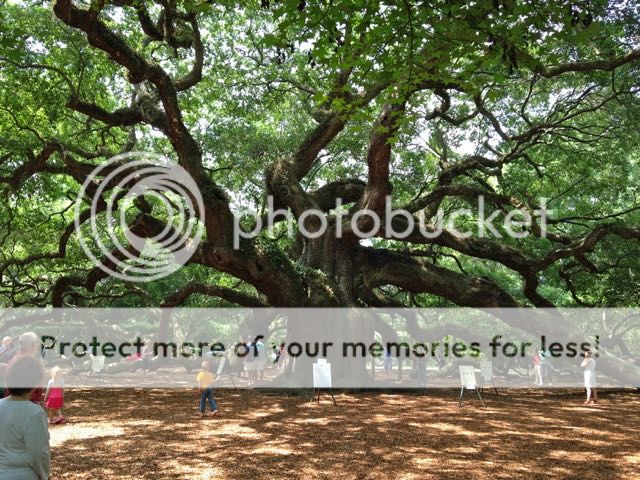 That picture doesn't even do it justice. That tree's size is beyond belief. Fingertip to fingertip, it would probably take close to 6 adults to reach all the way around it. It's truly an incredible tree. Those branches close to the ground are as wide as a twin bed. The big one on the right is almost as wide as a full in spots.