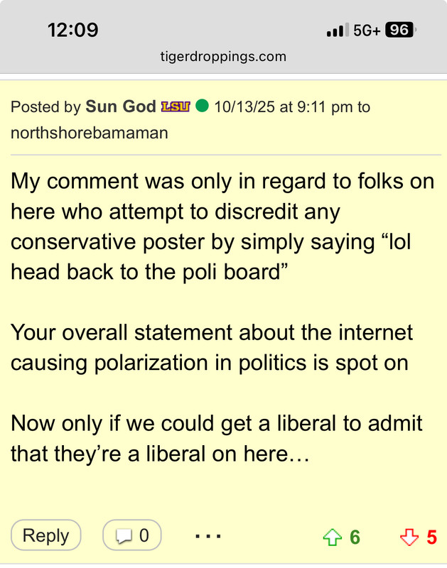 Well OP is using tigerdroppings, not Reddit, to show how social media splits reality. I know you are not the OP, but the minuscule size of tigerdroppings seems relevant in such a discussion.