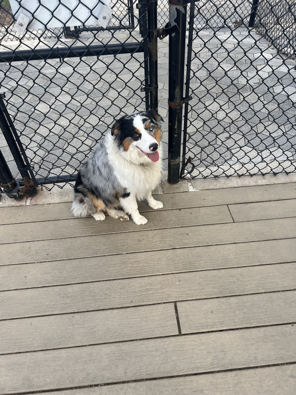 I got to the park and there was one person and her two dogs and the Australian Sheppard. When she was leaving she commented on how that dog was there alone and no person with it.
