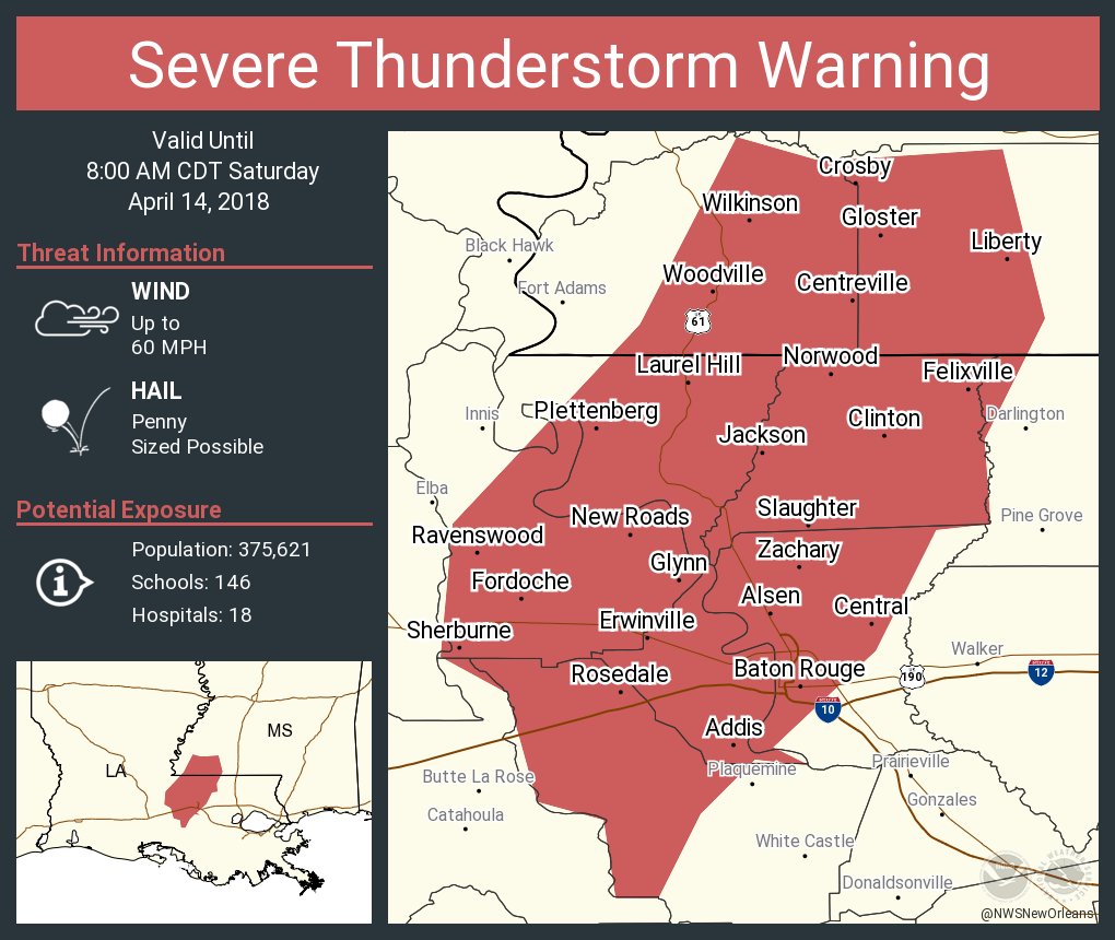 A new warning that includes parts of Iberia, St. Martin, and Lafayette parish.