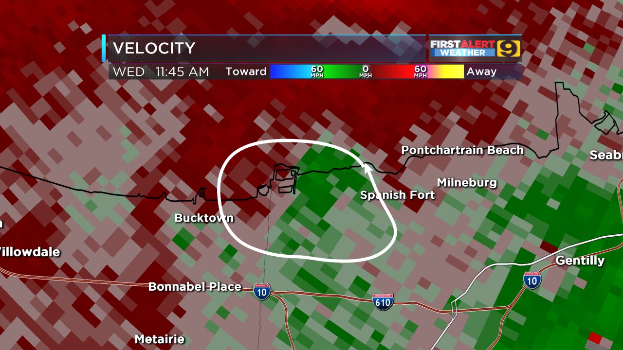 Its over Lake Pontchatrain now and headed towards the Manchac to Hammond area as it gain some strength over the lake.