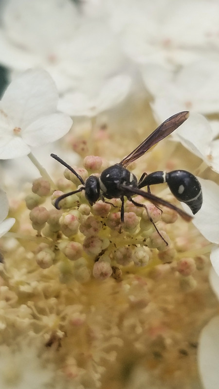 And for the love of all that is good and kind, don't kill this potter wasp when you see it flying around. It will feed the spiders you hate to its babies (the spider will be alive but paralyzed when it is eaten by the larvae) and pollinate your flowers: