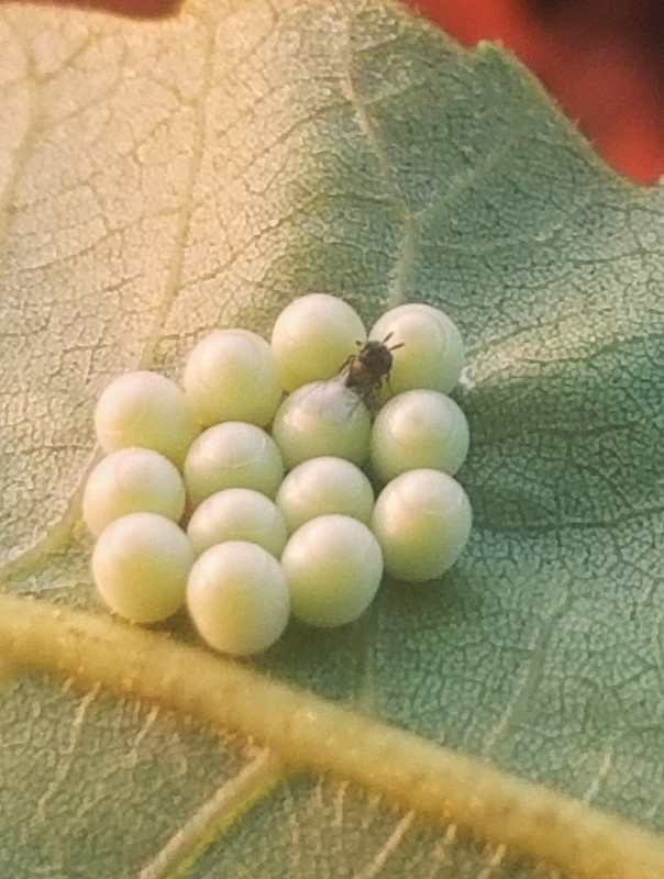 And here's a tiny parasitoid wasp laying its eggs in/on another creature's eggs: