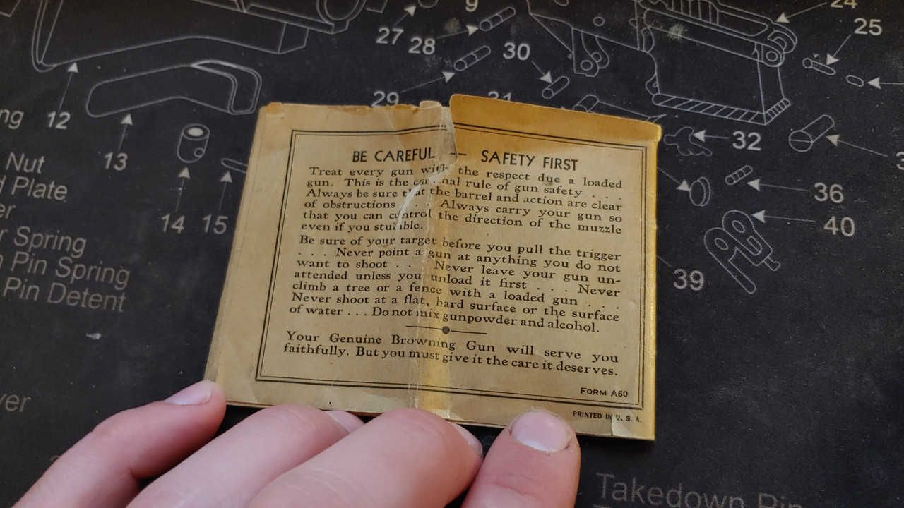 Hey man. Just found the original manual that came with my Grandfathers browning. Like others said before, they don't like too much oil. I always have used hoppes #9 in the bore and outside of the gun and wd40 in the action, wd40 keeps it running good into the single digit temps. Also, don't dry fire it, the firing pin might go flying out onto the ceiling.. Here's the photos of the manual.