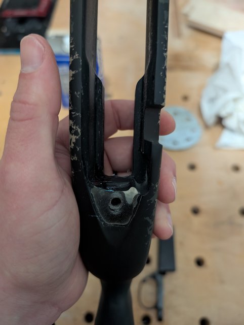 Well, did it last night, and while I didn't ruin anything, it's far from great. The epoxy kit was just far too runny and I was nervous to let it sit as the working time wasn't substantial. Those white areas are where I sanded down a bit. Covered them in epoxy, but it all leaked out. On the bright side, I'm not feeling the barrel deflecting when I torque down, so it "worked". Just not sure this is enough contact area around the front screw hole. Think I may find a thicker epoxy and do one more small repair to fill in the white void areas in the front.