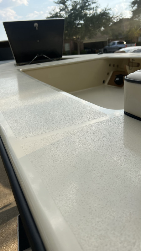Also, that style of deck surface is awesome. MyTriton intercoastal has that sand increased in gel coat. Easy to clean and the traction is off the hook. Rough on the knees and the feet but sitting instead kneeling becomes instinct and feet toughen up after the first few trips of warm weather