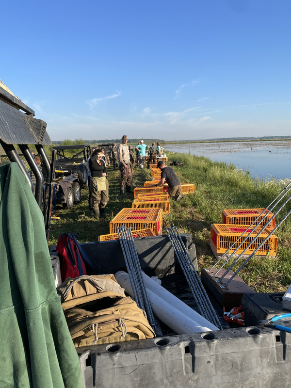 It was an awesome experience and highly recommend it for those who haven’t. Last year I was there for 2 weekends when birds were banded. The farm I hunt in south/central LA host the process. Students come in to help a wildlife and fisheries biologist who conducts the whole process. That’s a very short explanation of it. This morning around 750 blue wings were captured with close to 20 being “repeat offenders” as I call them. (previously banded). This puts the farm around 1,500 blue wings banded this spring. After over 10 years of hunting it we have only killed 1 banded blue wing. Regardless it was an experience I wont forget!