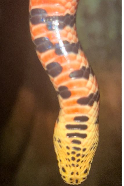 They’re very unique in their behavior. They tuck their head against their body and lash out like striking but don’t open their mouth. They curl up their tail to give you that flash of red, and sometimes flip over to show their belly - because in nature flashy colors often represent danger. When you pick them up they almost always musk you but have a unique almost “sweet” smell to their musk. And they love to poke you with that point on their tail.