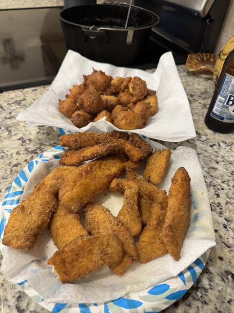 Fried up 6 little collarbone catfish and home made French fries. Tough to beat.