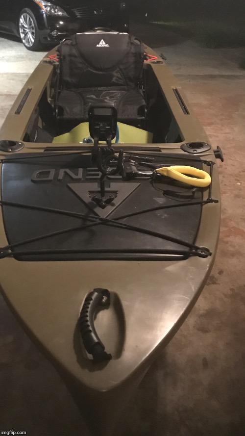 In my mind, as I sit in my kayak at night drinking beer (listening to ZZ Top) and thinking about how this is all going to play out, I want to put the paddle holder on the port side and run the anchor trolley on the starboard. That way I can paddle, set it in the holder while I grab my pole to cast, cast, set it in one of the rod holders, then deploy the anchor with my right hand.
