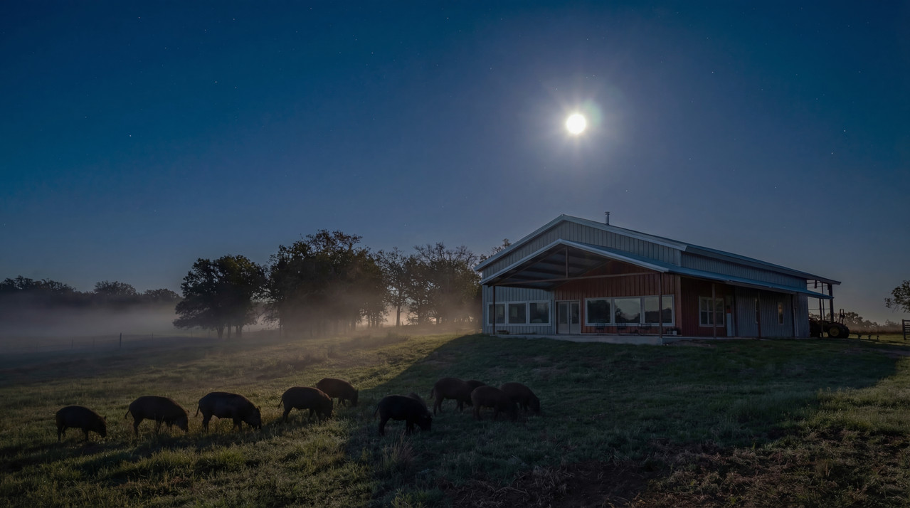 Pigs at the Barndominium. The video doesn't show it, but I enable the mic and the pigs freeze, then run when I speak "Bang Bang Bang" into the app.