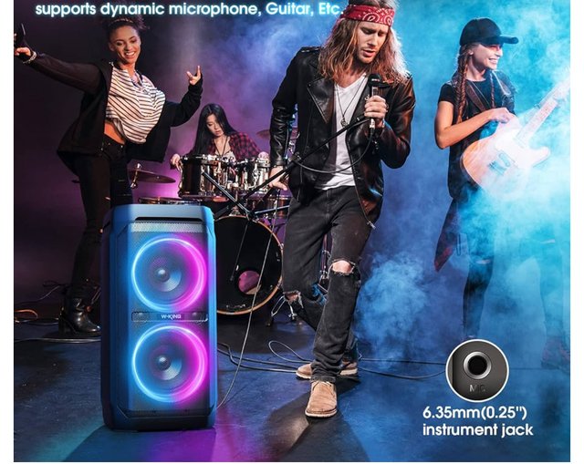 Really good sound out the box, bass was way better than I've ever heard out of a bluetooth speaker, waterproof, linkable, plenty loud enough, lasts 7-8 hours at 3/4 volume when you turn the disco lights off. To give you an idea of the size, it fits in the back compartment of a golf cart laying down.