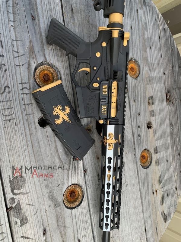 I like that it's Saints colours and has a futuristic vibe. I picture it going "pew pew pew" more like a space laser that Elroy from "The Jetsons" would use than a traditional cowboy gun.