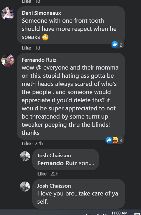 Facebook thread was deleted and locked down once brusly showed up.