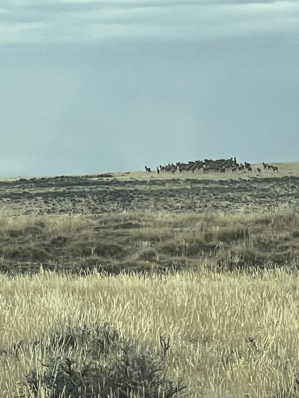 This was the herd of 60. As someone said, it’s like hunting 600 pound antelope. The lower country has water and good grass, so some live there year round. But they aren’t the easiest to slip up on with all of those eyes.