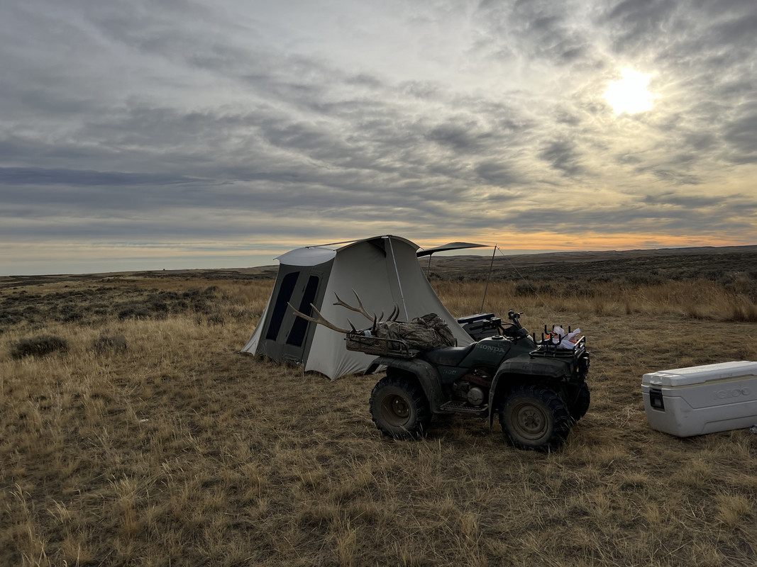 I was unable to return for opening day of rifle due to my son’s wedding. The season had been open for nine days when I returned. I met the rancher and paid him $200 for access. I got camp set up and went hunting. Mid morning of day two, I came across a herd of sixty that had been bumped. I totaled nine miles getting ahead of them in wide open country. I worked up a ravine to get ready for a shot, but the elk were bumped by a Polaris. I don’t know if he was a hunter or not. I went back to camp for lunch on day four, thinking about where to try. The large herd had disappeared. A man in a pickup stopped and said he’d bumped a herd of 20 that morning, but there was nothing special in the herd. With nothing else to go on, I headed to a glassing point in that direction. I immediately saw the herd from the point, about a mile away. No trees for miles. I mapped out a stalk in some ravines. I was able to pop up at 375 yards from the bedded herd. The best bull was on the left side of the herd, quartering away. I was prone and solid, so I sent a 180 Accubond from my 300 WBY, hitting him in a hind quarter and breaking a back leg. He lagged behind the herd and I got another round in him going away. He disappeared into a draw, so I eased up to find him bedded and shot behind the shoulder. This caused him to roll into a tight ravine. He’s a small six by six, but I’ve already killed a giant a while back, so that was fine. As it turned out, he was on BLM, so he was solo, DIY, public land. Wyoming has been good to me. Four tags over the years have produced two bull elk, a muley buck, and an antelope. It’s always satisfying to take your show on the road and find success.