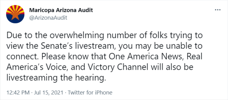 re: Arizona Senate to Hold Hearing Thursday Morning at 10AM (Noon CDT)