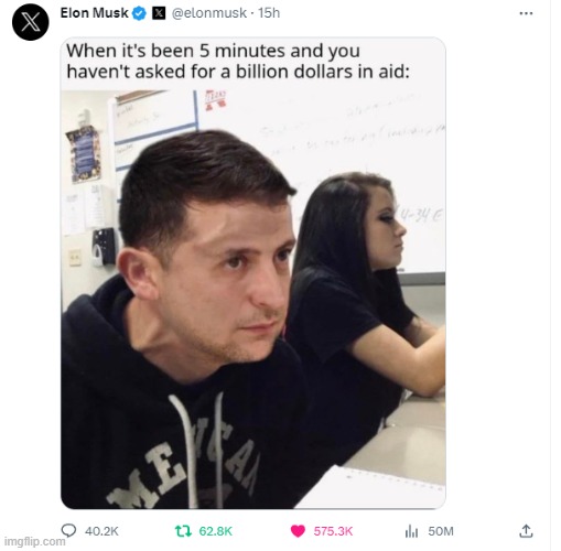 Is Elon ever going to admit that providing DoD and Ukraine assistance with Starlink was a mistake?