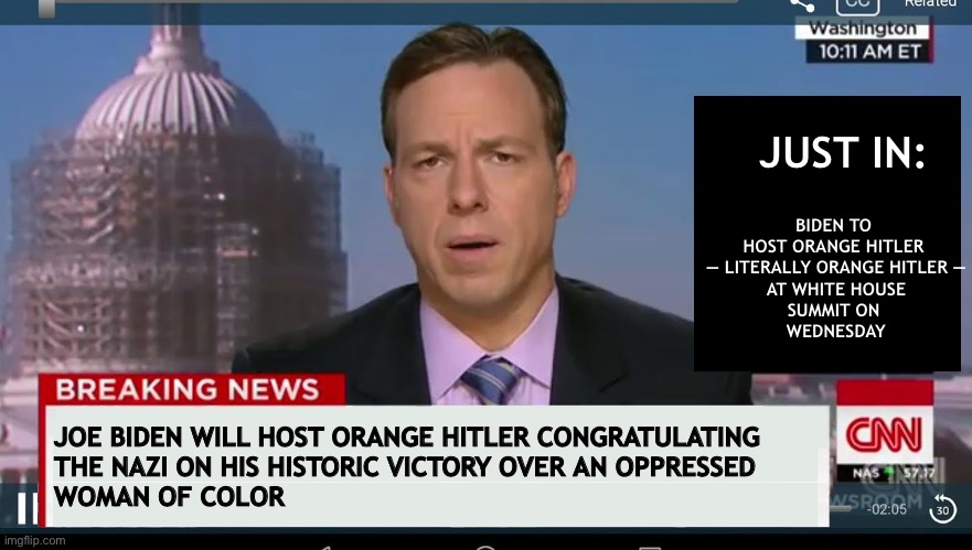 Leftists that have been brainwashed to believe that Trump is Hitler must be having a cognitive dissonance overload seeing Trump being invited to the White House.