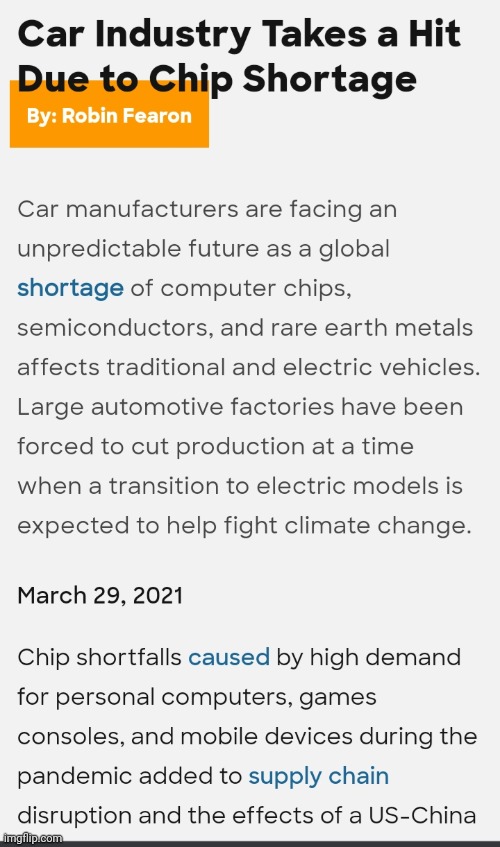 Here’s also the thing and I’m rarely one to defend China, but there are shite tons of container ships along the West Coast filled with these chips, cars, hardware, equipment, etc, but those dumb frick governors on the West Coast (Gavin Newsom in particular) have limited the capacity of the docks to a third of their capacity.