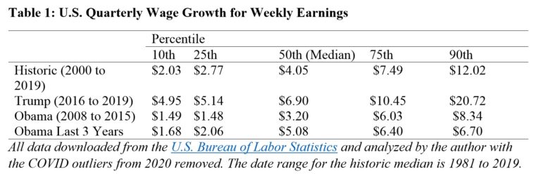 During the first three years of the Trump presidency, wage growth was off the charts, especially for low-income workers and African Americans. The third-quarter economic data released Thursday confirm once again that Trump is on the job for U.S. workers.