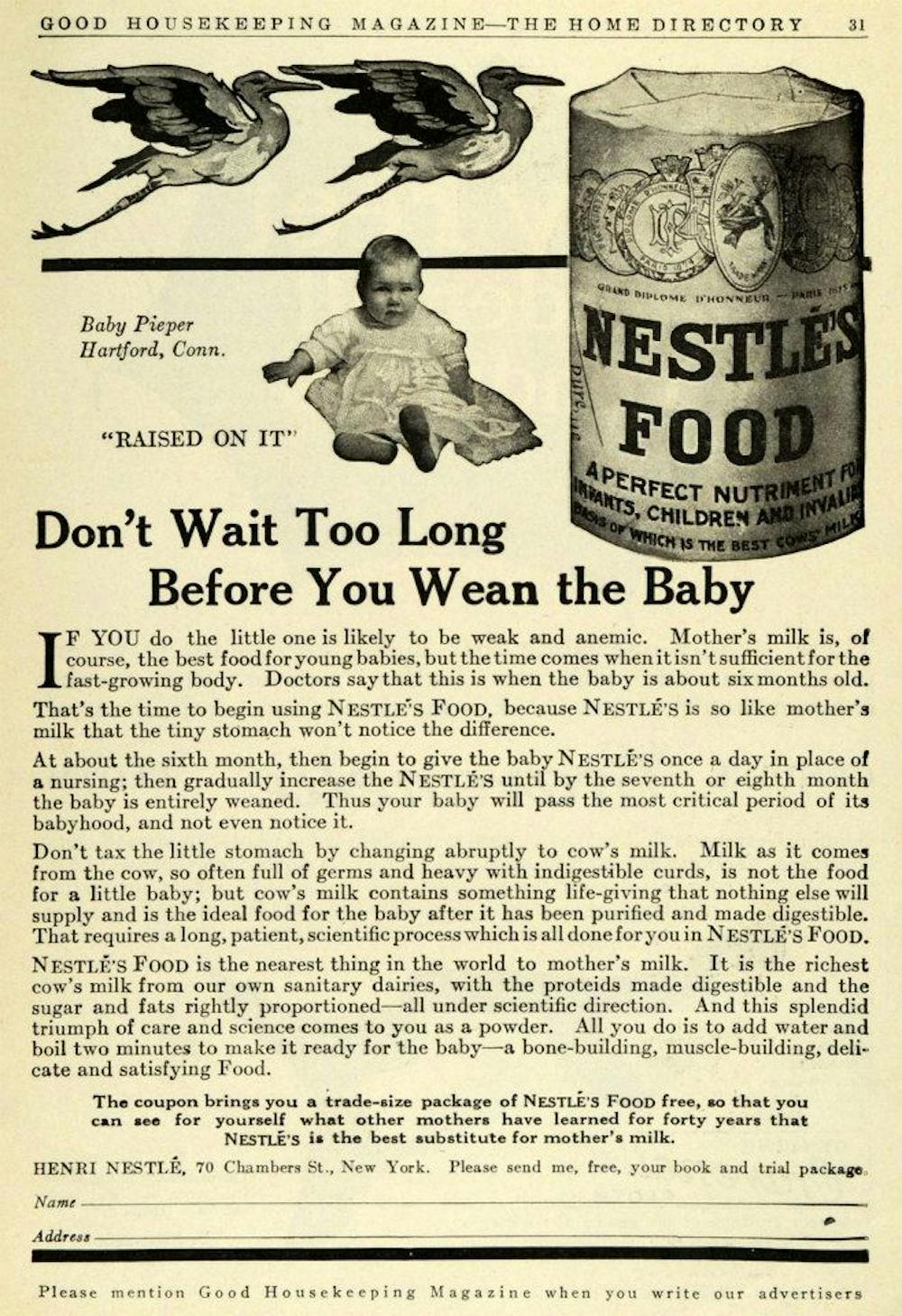 The first line literally says “Mother’s milk is, of course, the best food for young babies.”