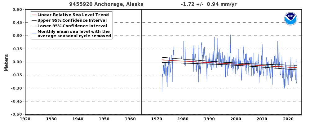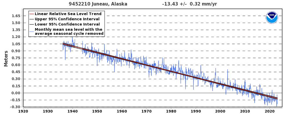 In your neck of the woods the sea level is decreasing at a similar rate to the sea level increase in Louisiana for the exact opposite reasons::