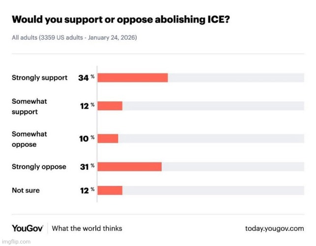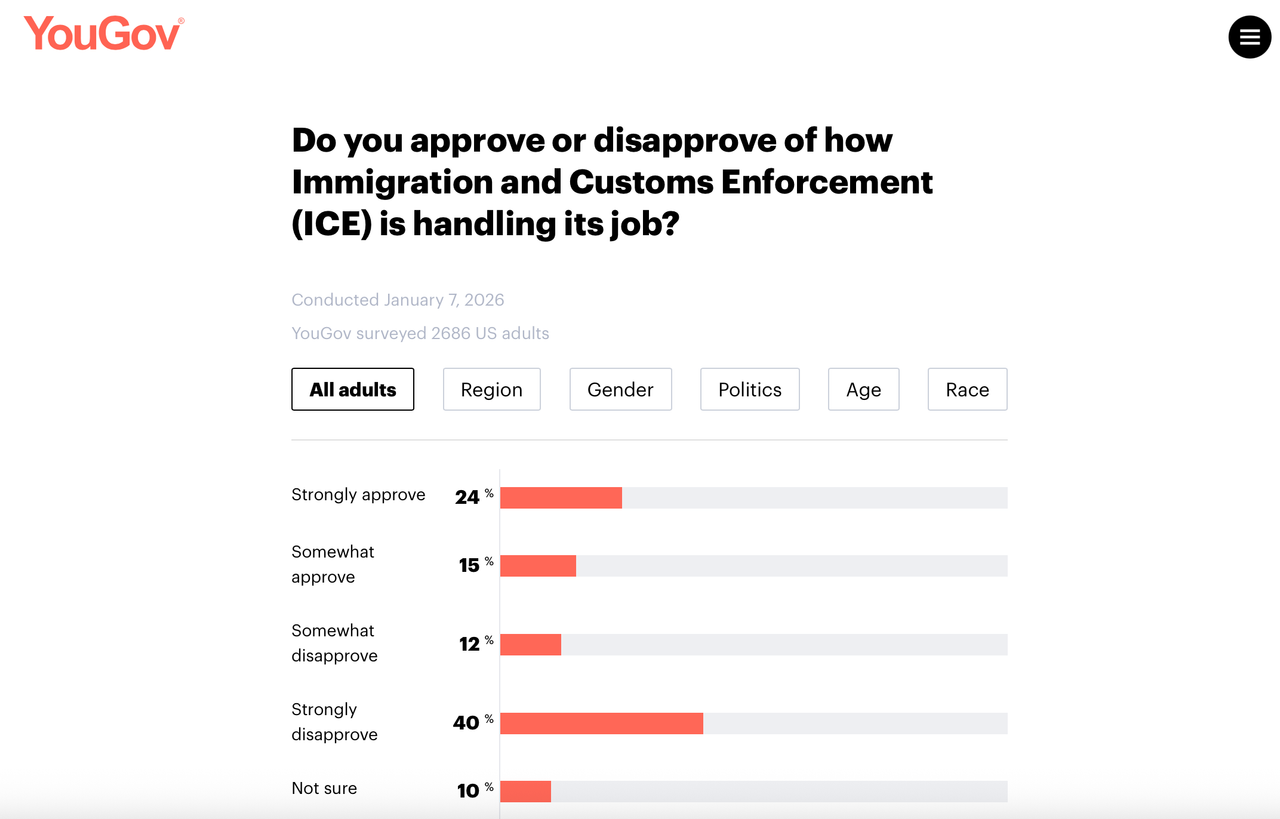ok, so the majority (52%) disapprove of how ICE is doing its job and only 39% approve of it.