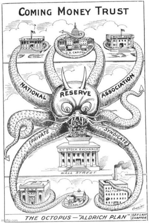 Senator Nelson Aldrich was one of the members of The Creature from Jekyll Island crew, and was the lead legislator who guided the drafting the of the legislation that created the Federal Reserve.
