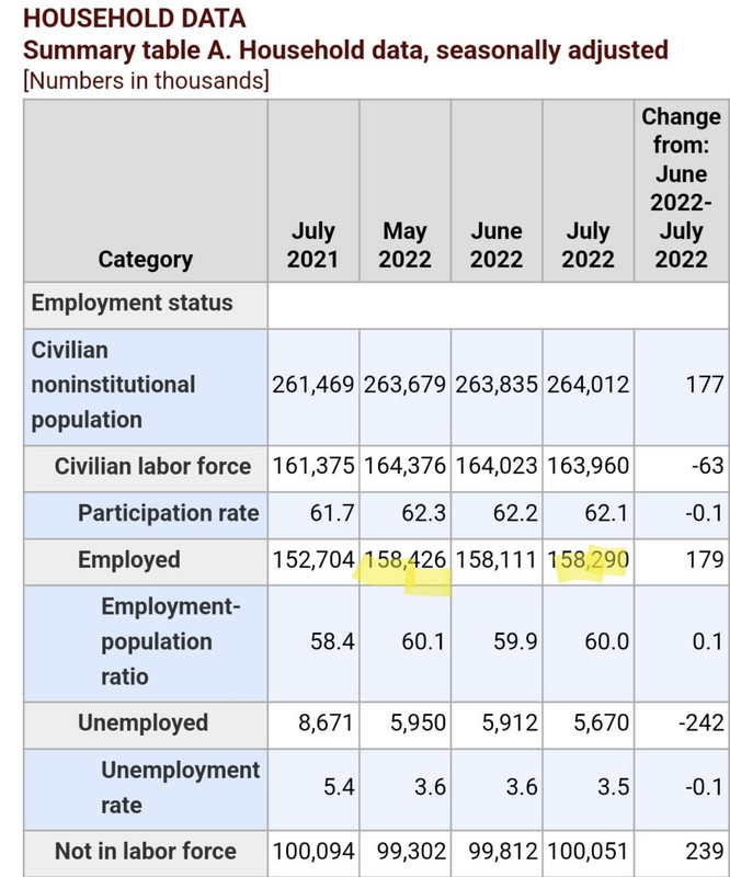 The employment population ratio is down from May to July.