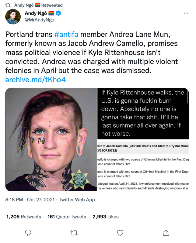 Except there's no fear of any rioting happening once Rittenhouse is cleared. None of the rioters that he shot were African American.