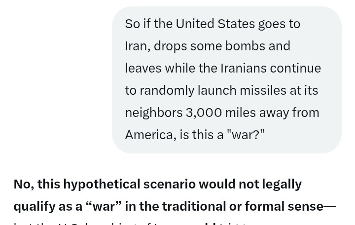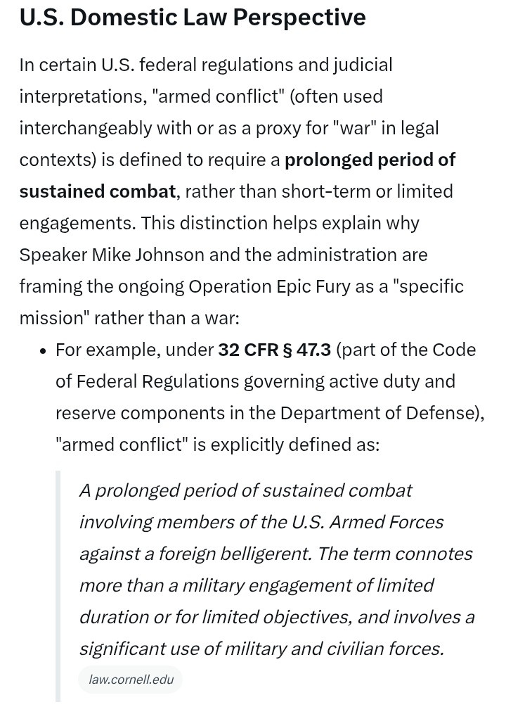The distinction matters. It may look like war, but it doesn't meet the legal standard yet. Period.