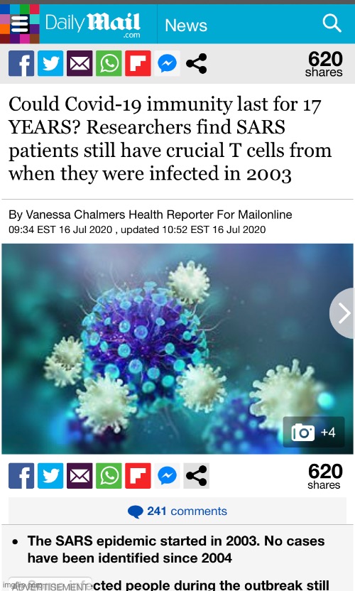 With the GOF funding and research, not sure comparing SARS that burned itself out to a manipulated virus is a good comparison; you know, apples and oranges.
