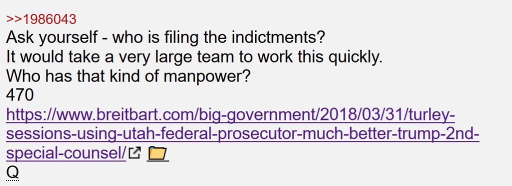 In a July 1 post, QAnon referred to the latest count of over 40,000 sealed indictments filed in U.S. Federal District Criminal Courts since October 30, 2017, and linked these to prosecutions being led by the U.S. Attorney for Utah, John Huber.