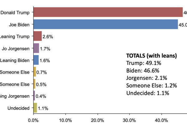 MI Oct 29, 2020 Presidential Poll TOTALS (with leans)Donald Trump 49.1% Joe Biden 46.6% Jo Jorgensen 2.1% Someone Else 1.2% Undecided 1.1%