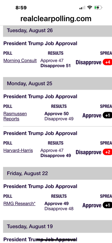 Trumps approval is basically even. In the red in a few, a few in the black.
