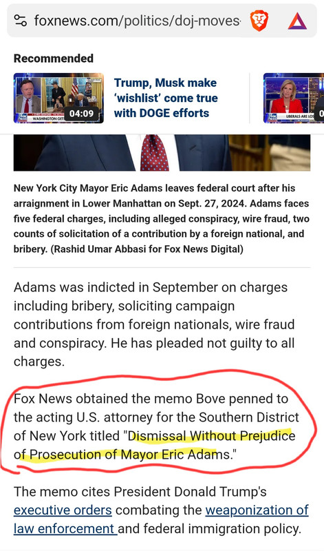 There is something larger in the works relative to the Trump administration and the mayor. I can hardly wait to see what that is. I knew when Adams started to cozy up with Trump before the election, he was going to get a pardon. We will now see why.