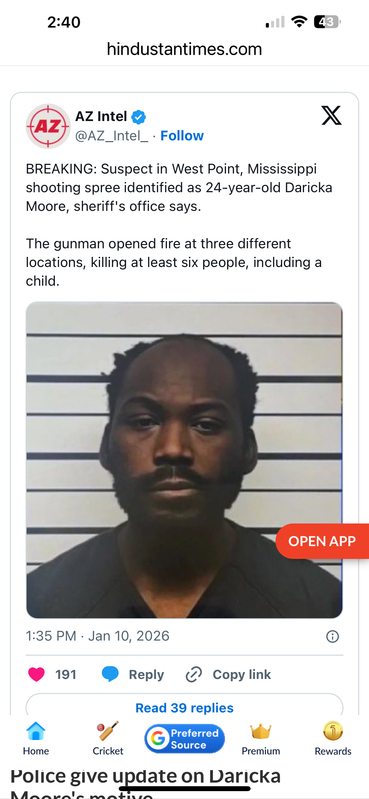 Suspect killed 6 people in Mississippi last night, democrates not interested