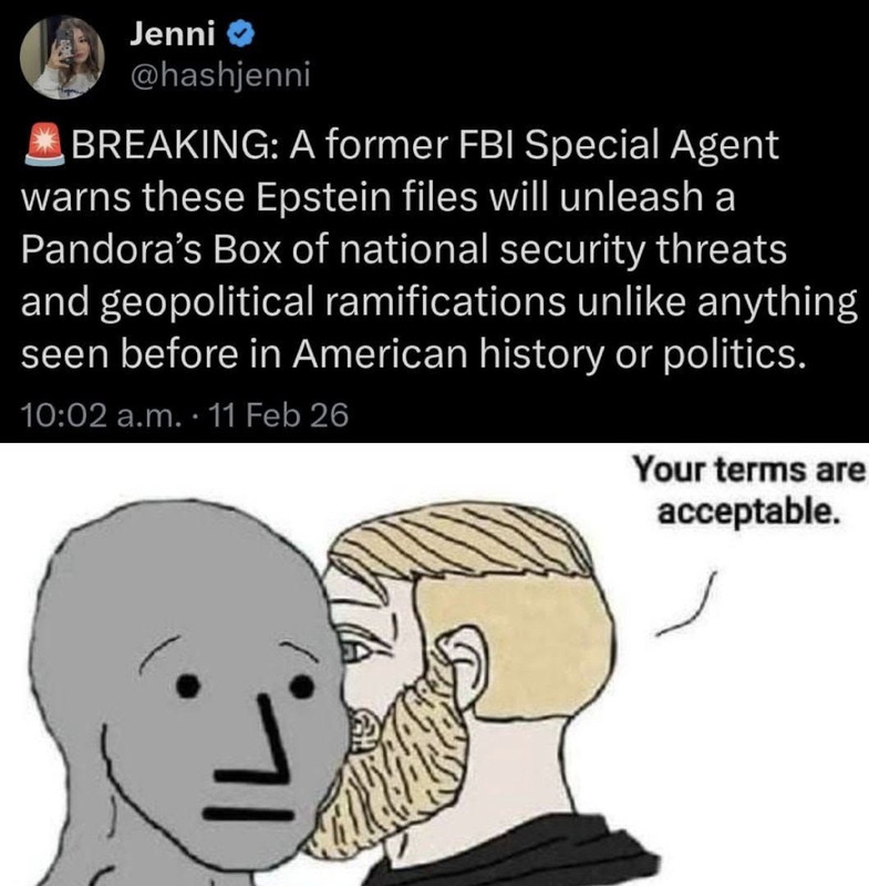 You nor anyone on this board is prepared for the consequences of a failed government or economic collapse. Regardless of the fact the Epstein files aren’t going to lead to either lol that is comically ridiculous