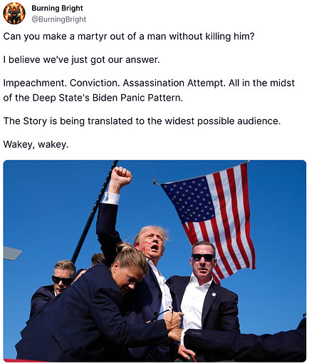 Continue to pray for our country, and pray for the people that are literally posting their displeasure that President Trump wasn't un-alived in this heinous assassination attempt. It's this mentality that has been cultivated by the left to get to this point.