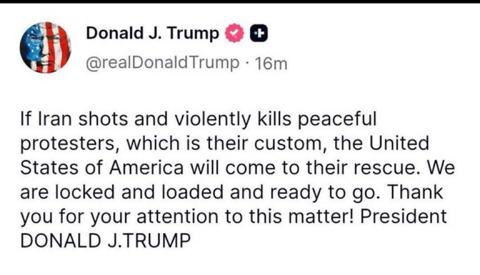 Trump is a fricking moron for posting that. He’s responsible for thousands of dead Iranians who thought he was coming to their rescue, not letting weeks go by after it’s all died down.