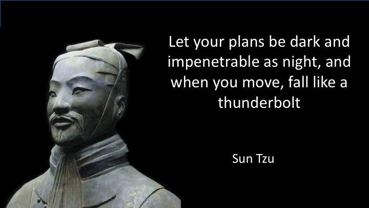 Patience...it's all coming together and Trump has described himself as a student of Sun Tzu's The Art of War and listed it in his own book, Trump 101