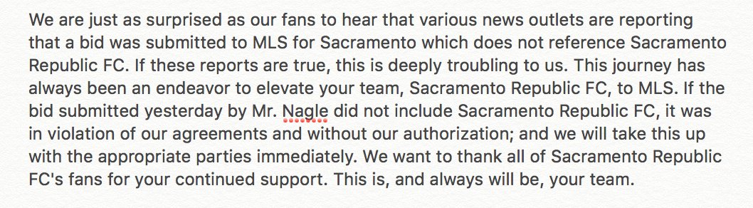 Barely 24 hours ago, Sacramento appeared to be a leading candidate for a Major League Soccer expansion team. On Wednesday, the city’s MLS bid was plunged into chaos amid a dispute over control of its minor league team, Sacramento Republic FC, and the Republic FC brand.