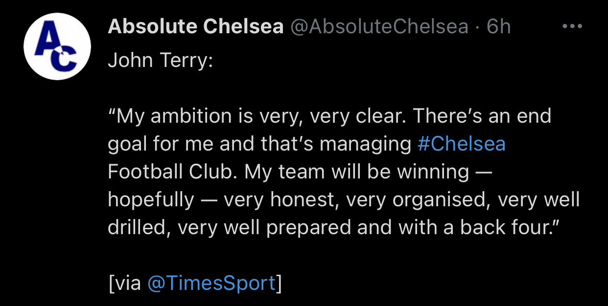 Roman is brutally honest. Good on him. Glad Blues have an owner who will do what it takes to get the club to the top. Makes me hopeful for a big striker signing this summer as well as other additions.