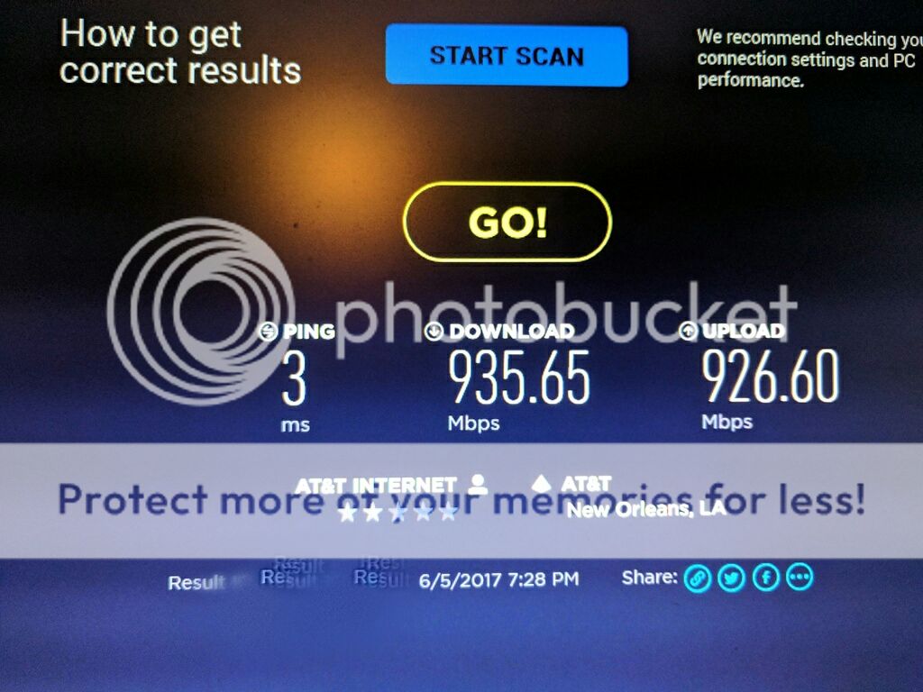 So Mr. Ramrod what did you do to increase the speed? did you just go with the at&t router and cut out the other router? I ask because i have the at&t router that connects directly to my main PC where i do the Speed test. From the road where the main fiber runs to my house is only like 15 yards then from the wall to my router is about 6 feet.My Pc then connects directly to router. The guy installing said the speeds are only reaching about 600 mbps in my neighborhood. Not sure i will ever get that much speed. pretty sweet i must say. Never thought id be complaining about 4 to 5 hundred mbps download speeds