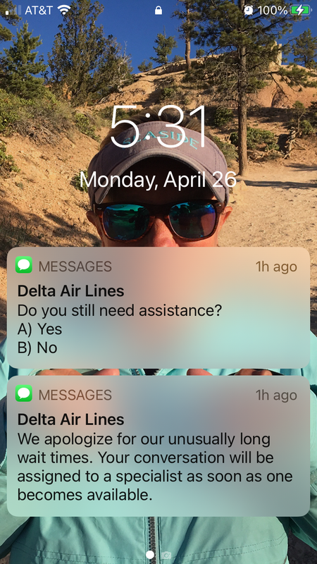 Text messaging via Delta app for customer service